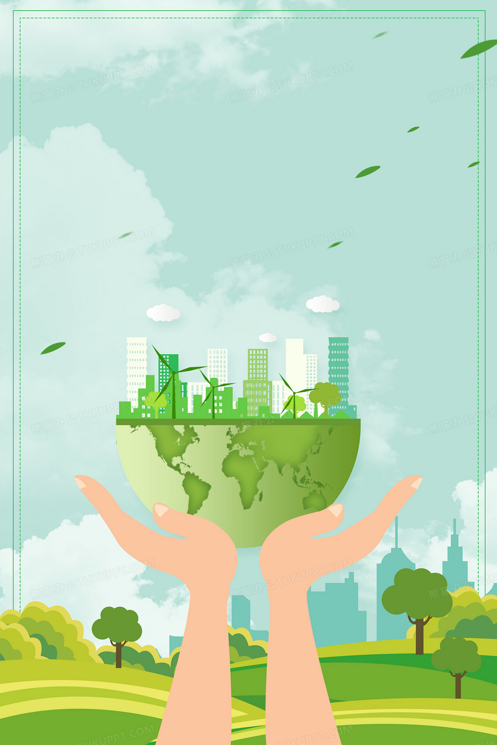 本作品內(nèi)容為卡通綠色環(huán)保綠色地球城市背景, 格式為 psd, 大小12 MB, 圖片尺寸為3543 x 5315, 作品中背景圖片無(wú)需修改, 源文件無(wú)水印,可以直接使用, 歡迎使用熊貓辦公。 如認(rèn)為平臺(tái)內(nèi)容涉嫌侵權(quán),可通過(guò)郵件:tousu@tukuppt.com提出書面通知,我們將及時(shí)處理。