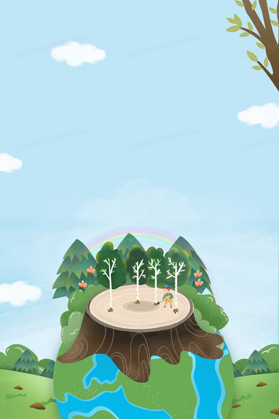 本作品內(nèi)容為植樹節(jié)種樹綠色地球環(huán)保背景, 格式為 psd, 大小53 MB, 圖片尺寸為3543 x 5315, 作品中背景圖片無需修改, 源文件無水印,可以直接使用, 歡迎使用熊貓辦公。 如認為平臺內(nèi)容涉嫌侵權(quán),可通過郵件:tousu@tukuppt.com提出書面通知,我們將及時處理。