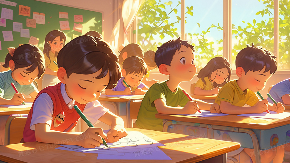 本作品內(nèi)容為教室認(rèn)真聽(tīng)課學(xué)習(xí)的小學(xué)生插畫(huà), 格式為 jpg, 大小3 MB, 圖片尺寸為2912 x 1632, 源文件無(wú)水印, 歡迎使用熊貓辦公。 如認(rèn)為平臺(tái)內(nèi)容涉嫌侵權(quán),可通過(guò)郵件:tousu@tukuppt.com提出書(shū)面通知,我們將及時(shí)處理。