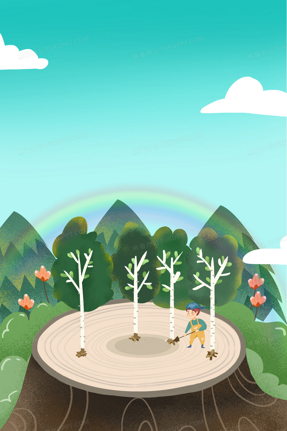 本作品內(nèi)容為保護環(huán)境植樹節(jié)背景, 格式為 psd, 大小60 MB, 圖片尺寸為3543 x 5315, 作品中背景圖片無需修改, 源文件無水印,可以直接使用, 歡迎使用熊貓辦公。 如認為平臺內(nèi)容涉嫌侵權(quán),可通過郵件:tousu@tukuppt.com提出書面通知,我們將及時處理。