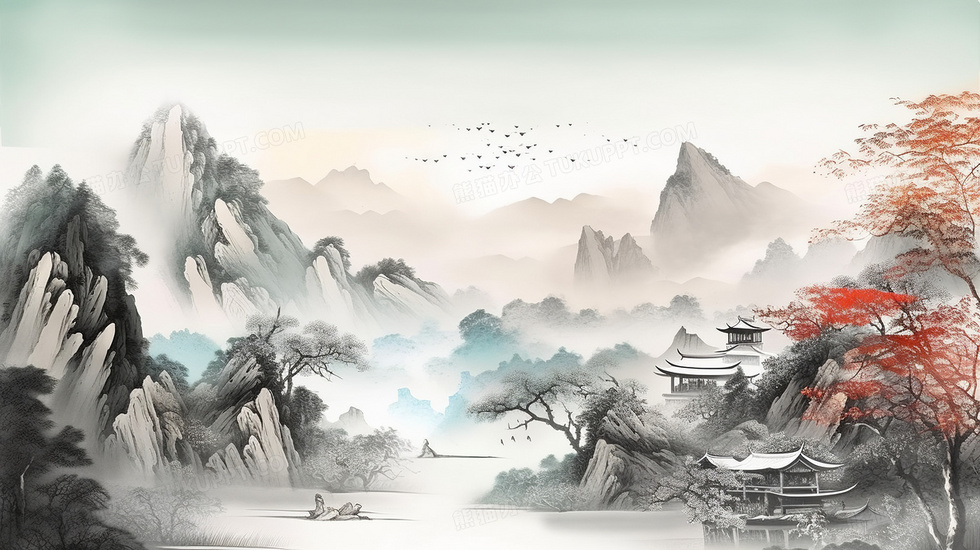 本作品內(nèi)容為水墨中國風(fēng)山川河流大氣中式山水畫, 格式為 jpg, 大小3 MB, 圖片尺寸為2912 x 1632, 源文件無水印, 歡迎使用熊貓辦公。 如認(rèn)為平臺內(nèi)容涉嫌侵權(quán),可通過郵件:tousu@tukuppt.com提出書面通知,我們將及時處理。