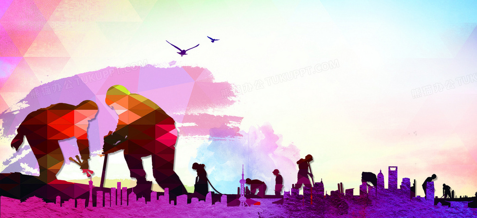 本作品內(nèi)容為五一勞動節(jié)剪影漸變banner, 格式為 psd, 圖片尺寸為1920 x 880, 作品中背景圖片無需修改, 源文件無水印,可以直接使用, 歡迎使用熊貓辦公。 如認(rèn)為平臺內(nèi)容涉嫌侵權(quán),可通過郵件:tousu@tukuppt.com提出書面通知,我們將及時處理。